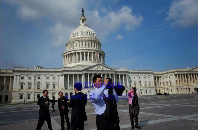 中國投資者在國會山的一家紀念品商店購物。