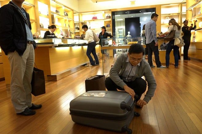 圖為中國投資者在華盛頓的一家路易威登(Louis Vuitton)商店購物。