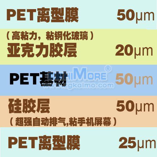 雙面涂布膠水。一面高粘(亞克力膠),一面低粘(硅膠)