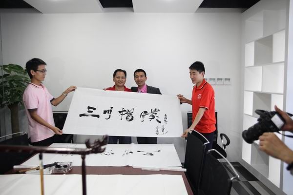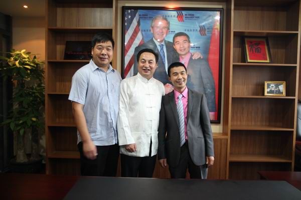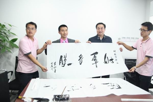 悍高集團(tuán)董事長(zhǎng)歐錦鋒、品牌策劃人閆真誠(chéng)老師與楷膜科技謝總合影